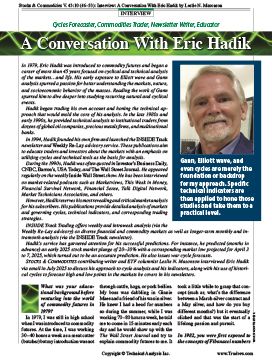 In 1979, Eric Hadik was introduced to commodity futures and began a career of more than 45 years focused on cyclical and technical analysis of the markets…and life. His early exposure to Elliott wave and Gann analysis spurred a passion for better understanding the markets, nature, and socioeconomic behavior of the masses. Reading the work of Gann spurred him to dive deeper into studying recurring natural and cyclical events ...